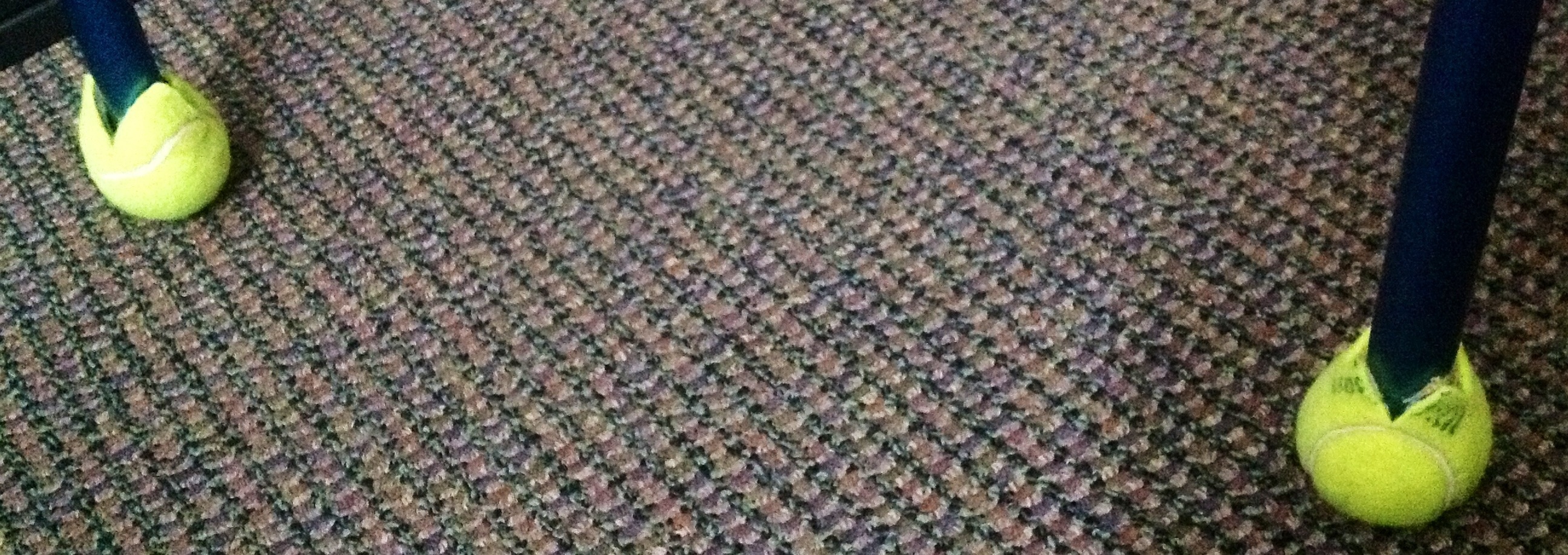 *NOTE: How to fit tennis balls onto the legs of your walker: First, find some old tennis balls, they will be easier to cut into. Use a knife or box cutter to make an x at the center of one side of the ball. Next, if your walker has rounded leg ends, remove them so you can put the metal pole right into the x. When we did it, the x on one ball was a bit larger than the x on the other. It made it easier to get on to the end of the walker leg, but it fell off sometimes when it was bumped into things. Pinch the x open as much as you can and work the leg end into the ball. It took a few minutes, but has made a huge difference.